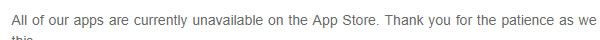 (App Storeにてアプリが公開停止した件について)アップルの要件を完全に厳守するため、アプリをアップデートし、アップルに再送信中。公開停止の根拠は不明。アップルの決定をさらに理解し、問題に取り組む。